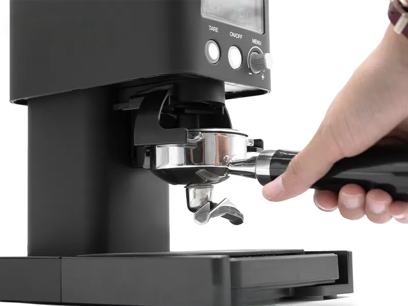 - صفحهنمایش دیجیتال برای نمایش درجه آسیاب، نوع دستگاه دمآوری و اتصال بلوتوث ترازو